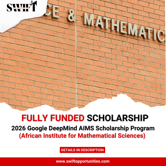 The 2026 Google DeepMind AIMS Scholarship Program at the African Institute for Mathematical Sciences (AIMS) is a remarkable opportunity for talented African students aspiring to pursue a master’s degree in mathematical sciences. This fully funded program supports students across Africa by providing comprehensive financial assistance, academic mentorship, and exposure to advanced research in mathematical and computational sciences.