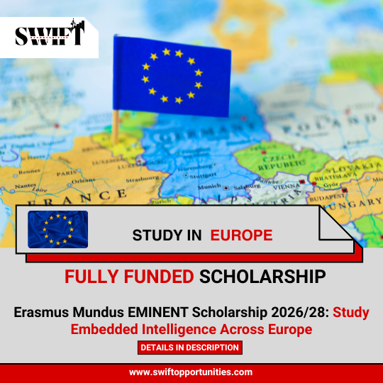 The Erasmus Mundus EMINENT Scholarship 2026/28 offers an exceptional opportunity for outstanding students who want to pursue a fully funded Master’s Degree across multiple top universities in Europe. This highly competitive program, officially funded by the European Union, provides a unique platform for students to study Embedded Intelligence and Nanosystems Engineering in Greece, France, Lithuania, Portugal, and Germany.