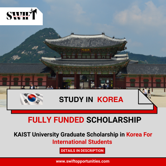 The KAIST University Graduate Scholarship in Korea For International Students (Fully Funded) is a prestigious funding opportunity designed to support outstanding international applicants who wish to pursue a Master’s or PhD degree in South Korea. This fully funded scholarship covers tuition fees, provides a generous monthly stipend, and includes health insurance benefits for the entire duration of the program.