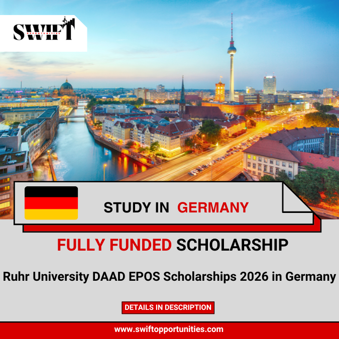 International students are invited to apply for the Ruhr University DAAD EPOS Scholarships 2026 in Germany. This is a fully funded master’s scholarship designed for outstanding candidates pursuing a career in development management. Germany remains one of the best countries to study for free, especially for international students looking for opportunities in public universities with world-class academic programs.