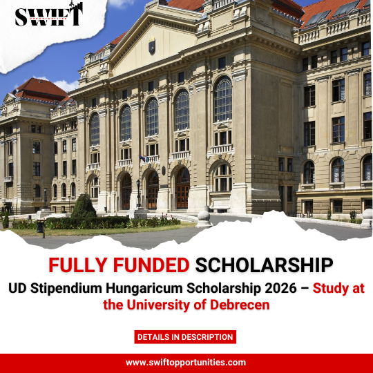 The UD Stipendium Hungaricum Scholarship 2026 (Fully Funded) offers an exceptional opportunity to study at a world-recognized university without financial burden. With a wide range of programs, strong research culture, and excellent student support, the University of Debrecen remains one of Europe’s top destinations for international students.