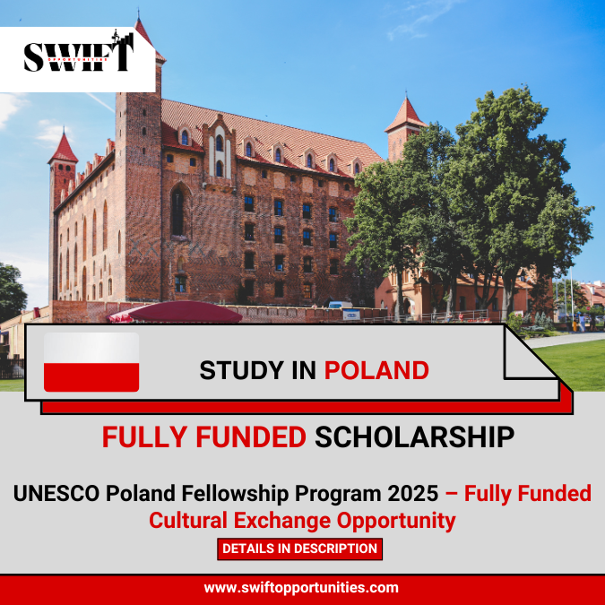 Applications are now open for the UNESCO Poland Fellowship Program 2025, a fully funded cultural exchange program for international students. This prestigious opportunity does not require IELTS/TOEFL or a minimum CGPA, making it accessible to a wide range of candidates. Eligible applicants must hold an undergraduate degree and be from Africa, Arab States, Asia & the Pacific, or Latin America & the Caribbean.